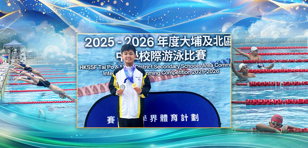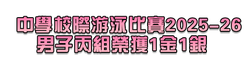 本校2C的李瑋庭同學在2025-26年度的中學校際游泳比賽中大放異彩,榮獲男子丙組的1金1,恭喜李同學!比賽成績如下: