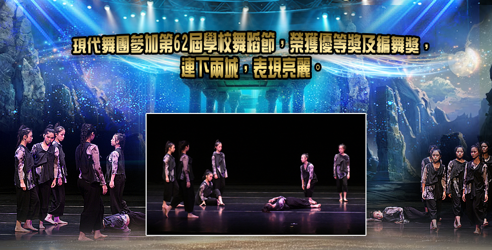 現代舞團早前參加由香港學界舞蹈協會有限公司主辦之「第62屆學校舞蹈節」,憑「疲勞候群症2.0」一舞榮獲最高級別的「優等獎」,編舞者陳嘉靜老師亦獲評判青睞,收穫「編舞獎」,成績可人。